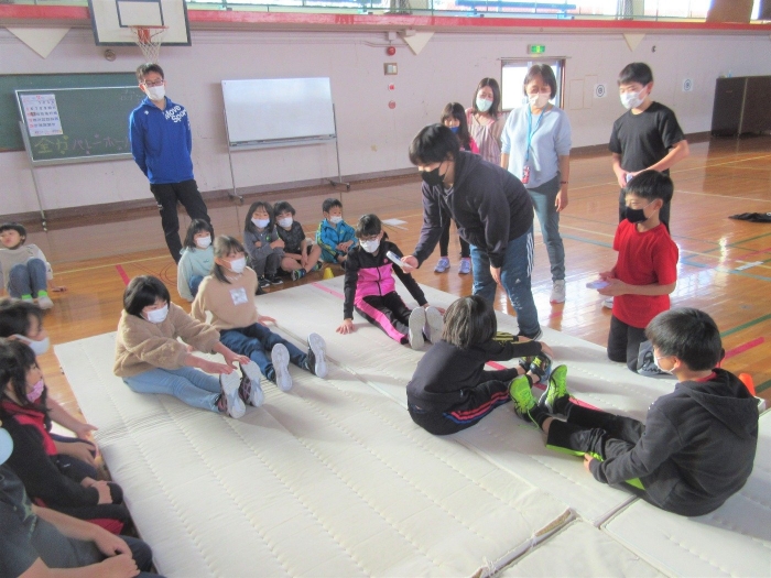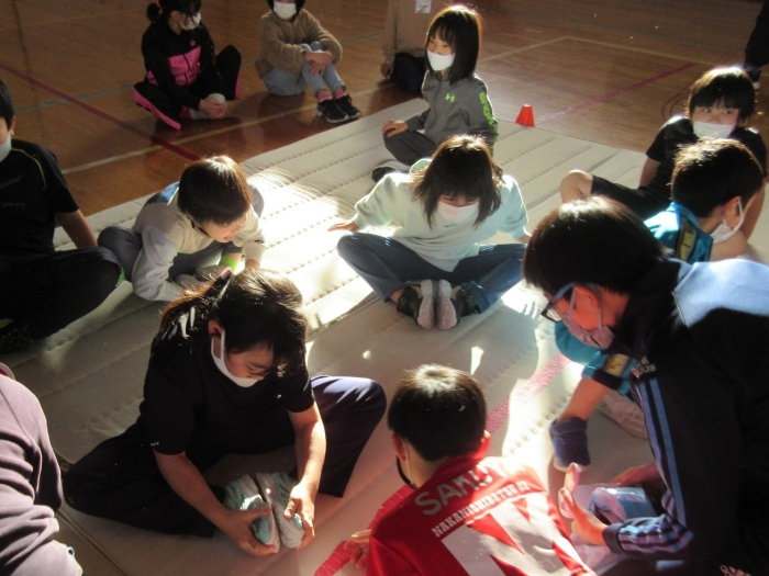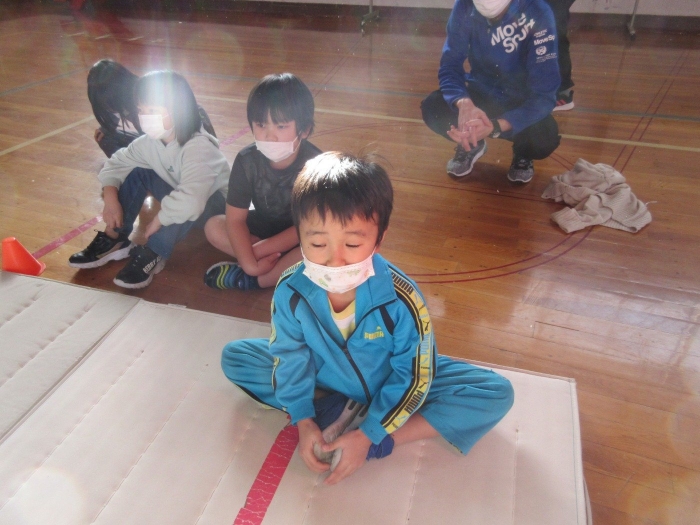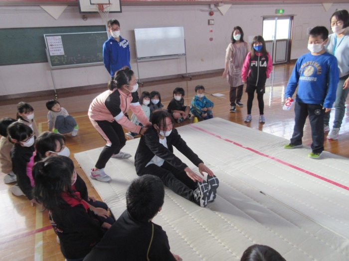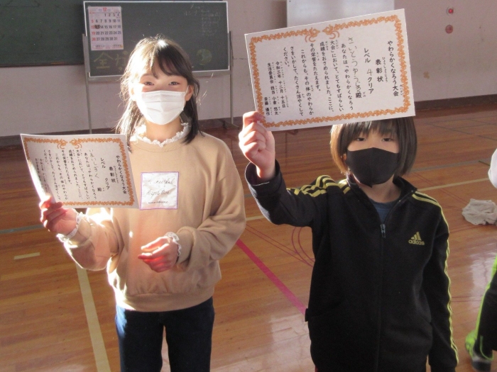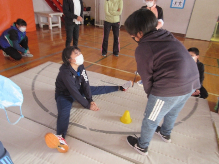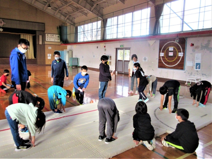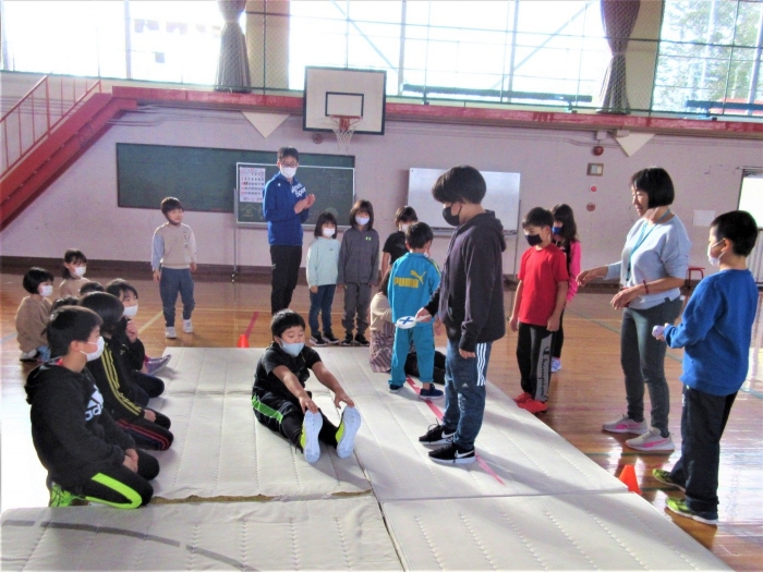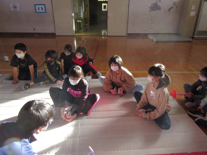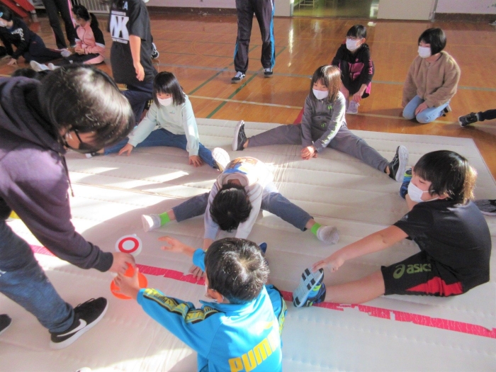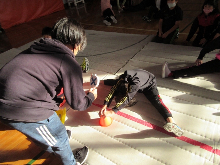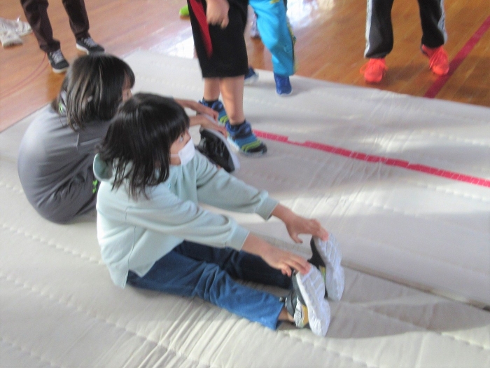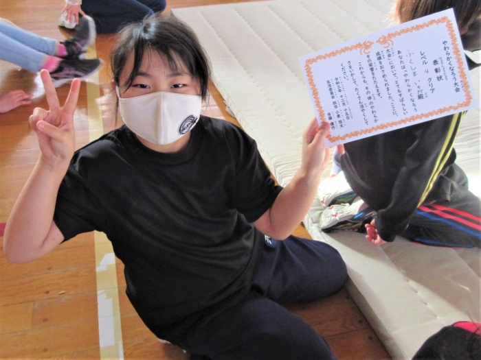 中西っ子のみなさんは、昼休みに体育館に集合し4段階の「からだのやわらかさ」に挑戦!