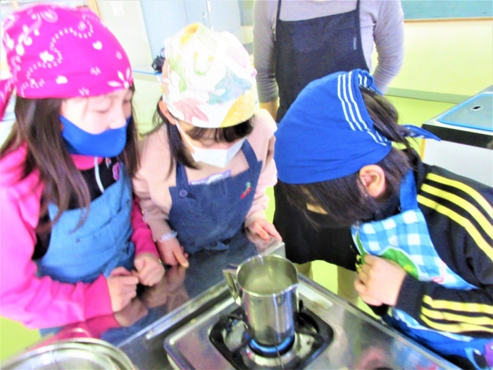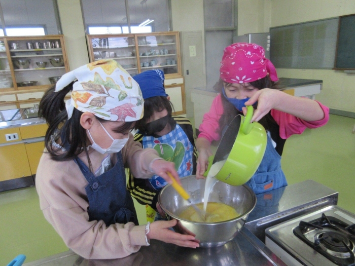 3年生は社会科「ミルクをさぐろう」のファイナル企画・・牛乳を使ったプリン作りに挑戦しました。