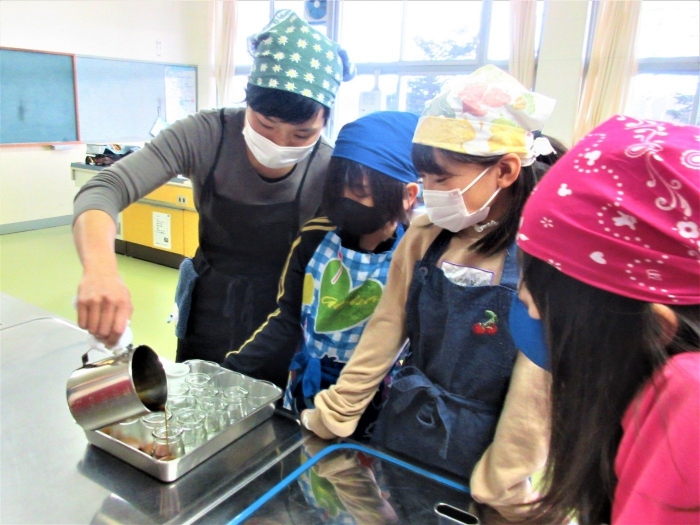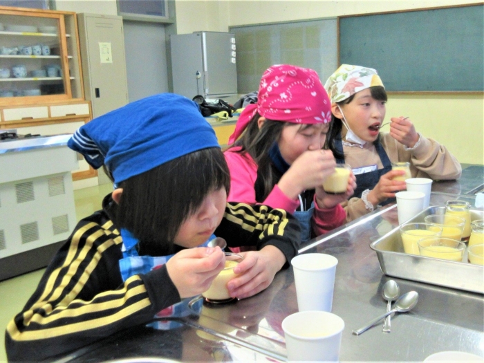 びっくりするほど美味しい本格派のプリンが出来上がりました。テストを頑張っていた4年生に差し入れしました。最後に4年生からもお礼と食レポを伝えました。お忙しい中、子供達の学習にご協力いただき、ありがとうございました。