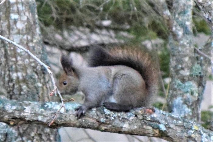 ここからは、朝、中西別小学校の窓からの風景を見ている気分で、エゾリスを探してみてください。
