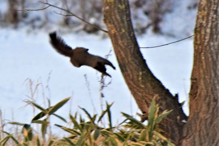 ここからはリスの朝の様子をご覧ください、金曜日、猛禽が来たので心配していましたが無事でした!良かった!(ちなみに、あの猛禽はノスリではなくハイタカと思われます。詳しい方は教えてください。)