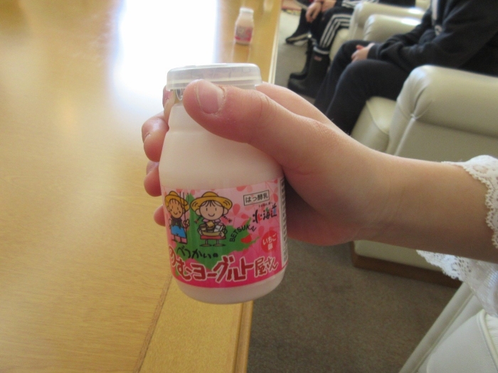 応接室のお客様用の白いソファに座ってのお話会。微生物の働きを知った子どもたちに、酪農の仕事とも微生物の働きは深く関わりがあること、目に見えないけれど大事な働きであること、興味を持って調べたり考えたりすることはとても大事なこと、子ども達のおじいちゃんを知っていること、スポーツのこと・・・わくわくする話をたくさん話してくださいました。子どもたちも話はつきません。ついつい時間をオーバーしてしまいました。