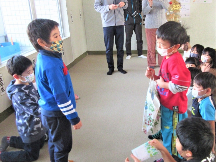 中西別幼稚園ひまわり組のみなさんが、先日お貸しした1年生と2年生おすすめの絵本のお礼の手紙を届けにきてくれました。