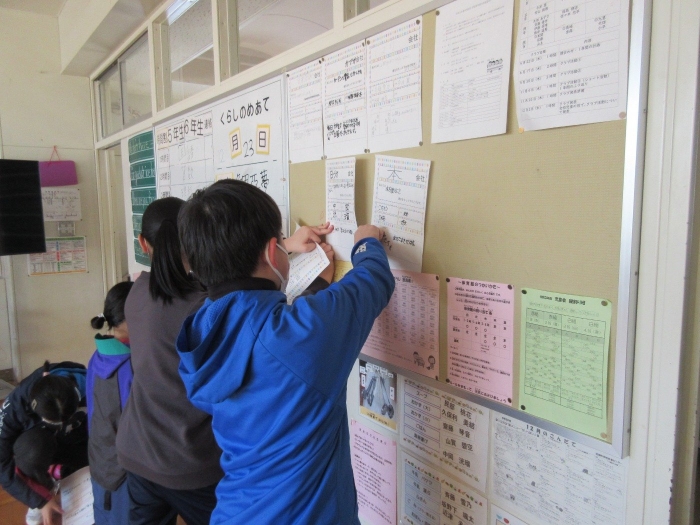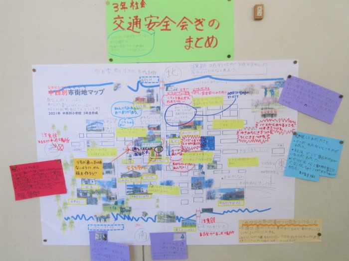 3年生は「交通安全会議」で学んだ大事なことを、全校にお知らせてしています。こちらは3学期まで残しておきましょう!