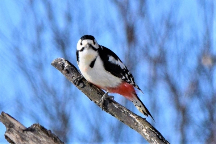 美アカゲラさんは正面だとつけ髭みたい・・キュートです