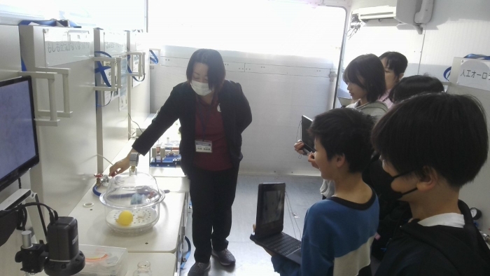 9月25日 移動理科教室 2024年09月25日(水) 今日はサイエンスカーが学校にやってきました。 顕微鏡を覗いたり真空ではマシュマロがどうなるか観察したり、-196℃の世界や化石のレプリカづくりを体験しました。 理科の面白さをあらためて感じることが出来ました。