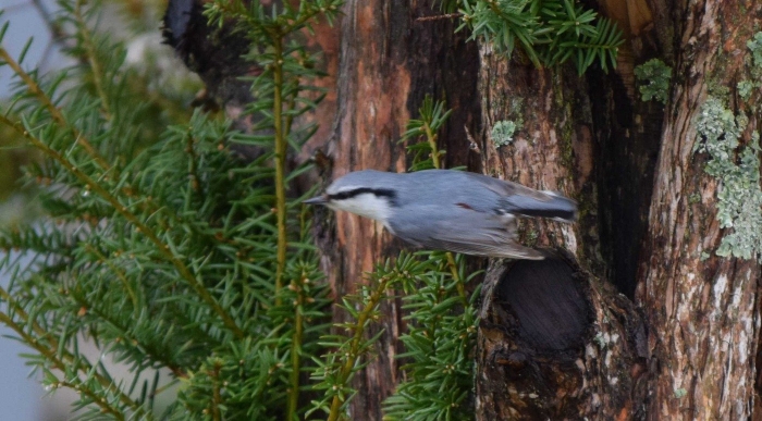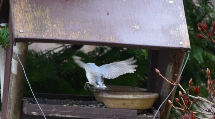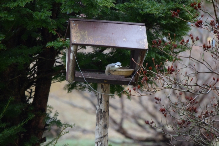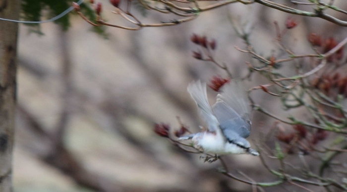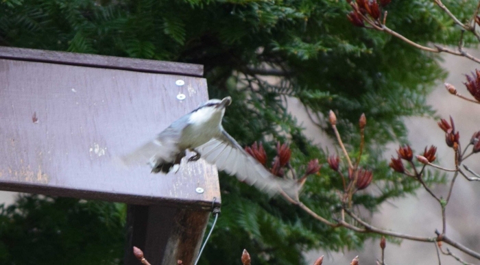 ゴジュウカラがせっせとヒマワリの種を運んで隠しています。