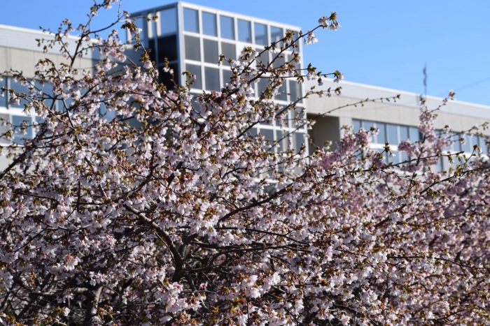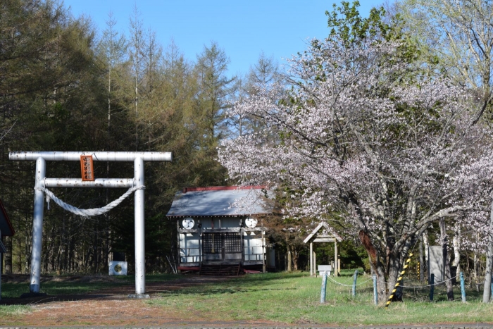 神社のエゾヤマザクラも満開です。