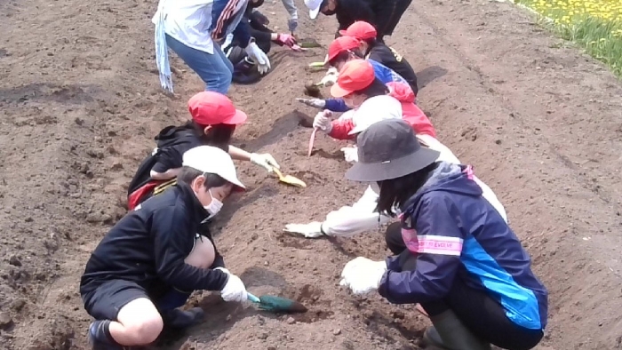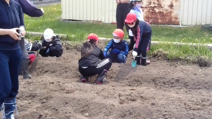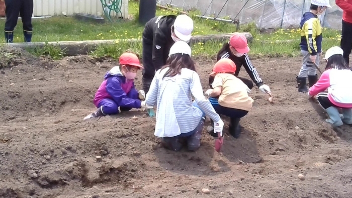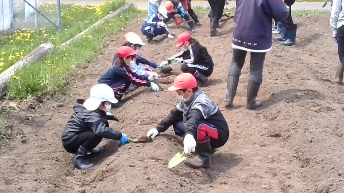 5月19日 春の集会 2022年05月19日(木) 「春の集会」がありました。 先日うね切をしたところに、みんなでジャガイモを植えました。 秋にたくさん収穫できるように、頑張ってお世話をしてほしいと思います。