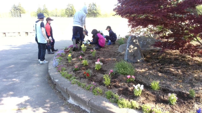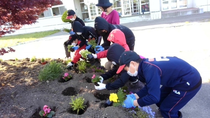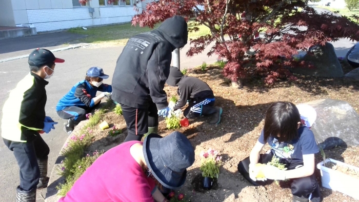 5月26日 花の苗を植えました 2022年05月26日(木) 放課後のバス待ちの時間に、子ども達が花の苗植えを手伝ってくれました。 6時間目はクラブの時間だったので、4年生以上の子だけでしたが、みんな手伝ってくれました。