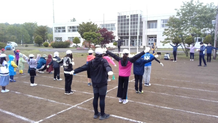 5月31日 運動会練習 2022年05月31日(火) 今週は天候が不安定で、外での活動も思うようにできないかもしれません。 今日は、全体練習の中で、開閉会式の流れ→ラジオ体操→全校遊戯(フォークダンス)の練習をしました。 高学年の子ども達は、幼稚園のお友達の目線に合わせてかがんで手を合わせたり、駆け足で移動する時にも、速さを調節してくれたりと、優しい場面がたくさん見られたことが嬉しいです。
