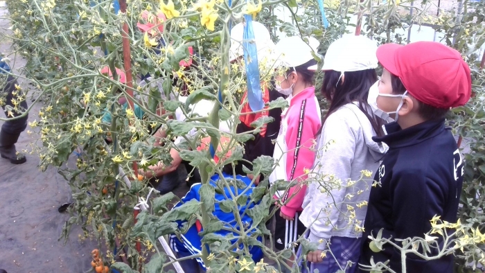 7月1日 トマト狩りに行ってきました 2022年07月01日(金) 1・2年生がお世話になっておる、栽培活動の先生から、「ミニトマトとりにおいで」とお誘いを受けました。みんなで先生の農園に行き、トマト狩り体験をさせていただきました。 子ども達も立派に育ったミニトマトを夢中になってとりました。