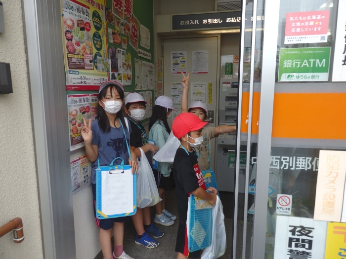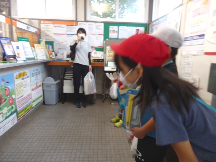 9月1日 町たんけん 2022年09月02日(金) 2年生が生活科の町探検で、郵便局に行きました。 子ども達は興味津々で、たくさん見学して、たくさん質問をして、郵便局の仕事を勉強してきました。 お忙しい中にもかかわらず、丁寧に子ども達の質問に答えて頂いただき、ありがとうございました。