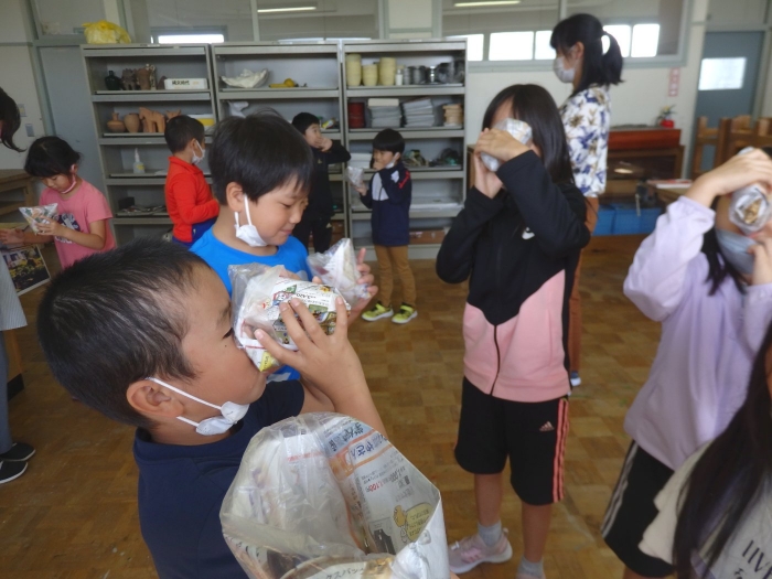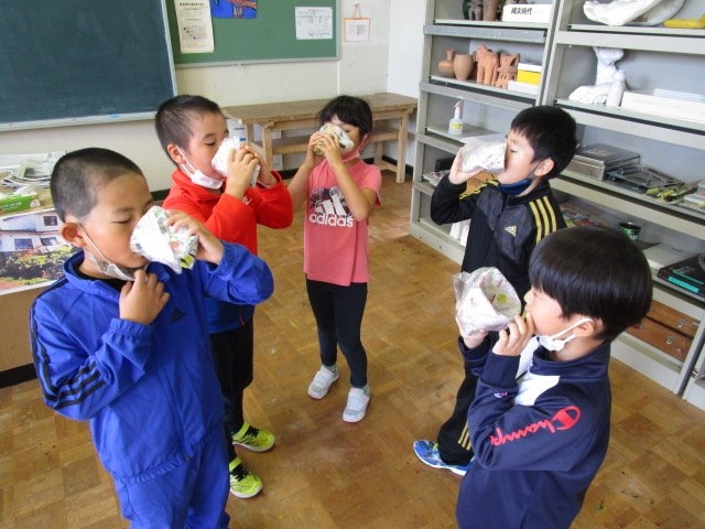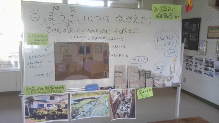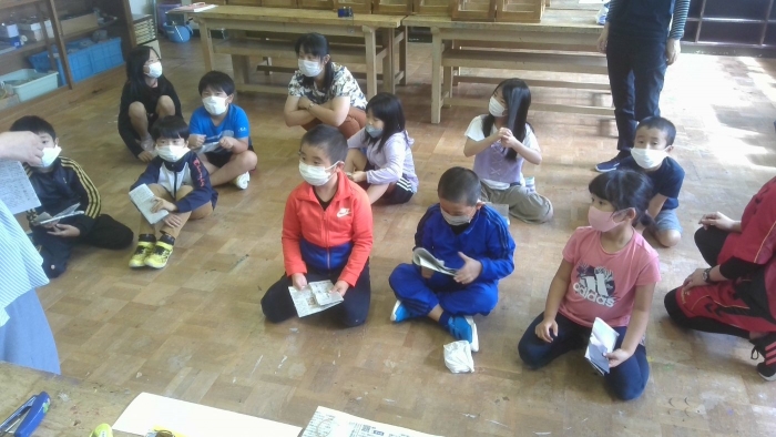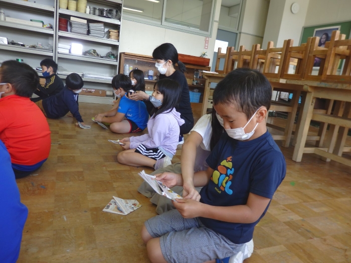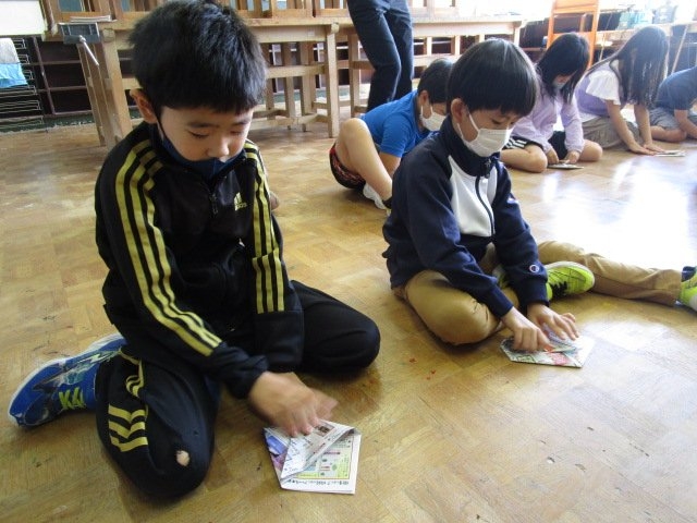 9月14日 防災学習 2022年09月16日(金) 1年生と2年生の子ども達が、防災について学習しました。 地震がきた時に気を付けることや、避難所での生活で困ることを想定して、新聞紙やキッチンペーパーを使って、コップやマスク、スリッパを作ってみました。 大規模な災害によって、停電や断水、物資の不足に見舞われた時に、身の回りの物を代用できることなどを学びました。