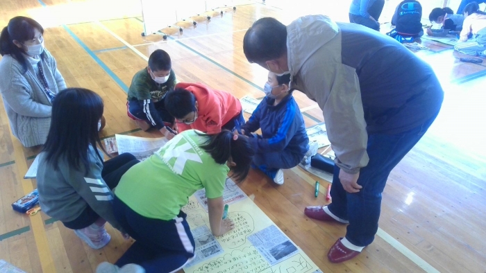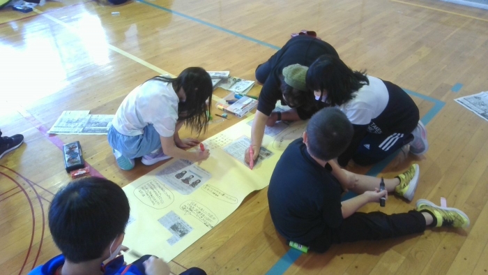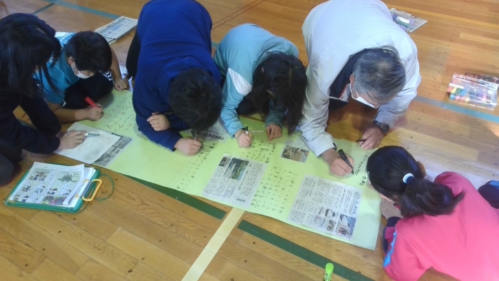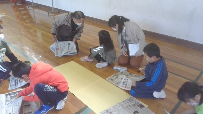 10月24日 全校まわし読み新聞 2022年10月26日(水) 全校まわし読み新聞の取組も2回目となりました。 今回は、地域の方にお願いして、一緒に活動に参加していただきました。 1年生から6年生までが同じ新聞を読んでいます。子ども新聞もありますが、一般の誌面にも目を通しています。習っていない漢字や難しい言葉があった時に、自分から質問することも大事な力なので、1年生や2年生には、堂々とわからないことを質問できるようにしたいと思っています。 今回は、子ども達が選ばないような記事を紹介していただき、新たな気づきもあった活動となりました。