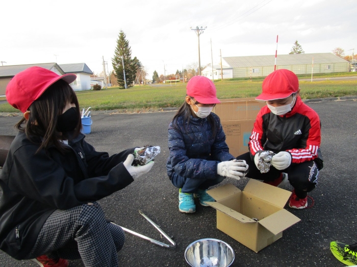 11月10日 クラブ活動 2022年11月11日(金) 今年度のクラブ活動も終盤となりました。 科学実験クラブはプラバンづくりに挑戦。イラスト選びと描く作業に時間を要しましたが、出来上がりはあっというまです。オーブントースターの中でクシャクシャと縮む様子を楽しみました。 ものづくりクラブは毛糸のボンボンマスコットづくりに挑戦。毛糸を一生懸命巻いて、ハサミでボンボンを整えて、目や口をつけて歓声ですが、毛糸がバラバラになったりと悪戦苦闘しながら作成しました。 野外活動クラブは落ち葉で焼き芋づくりに挑戦。煙に耐えながら美味しい焼き芋を完成させました。