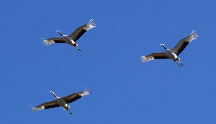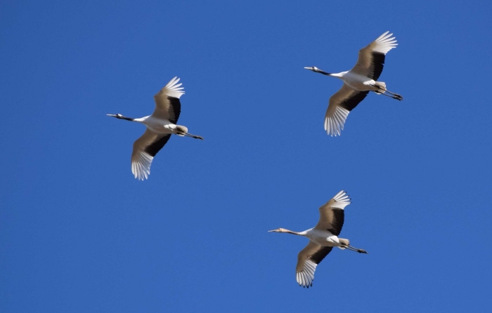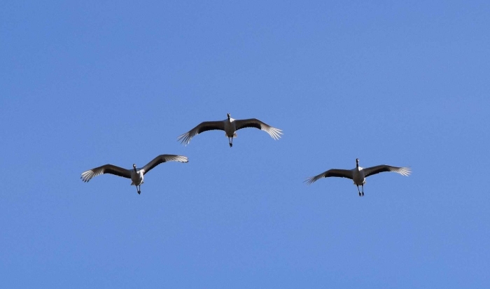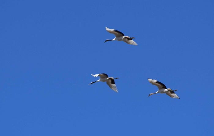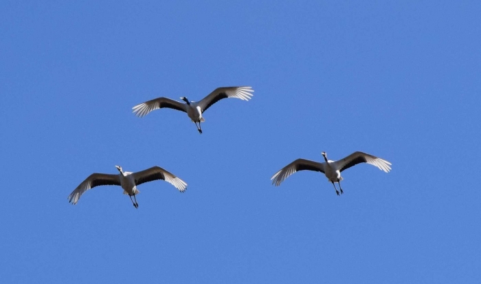 鶴がやって来ました。3羽仲良く飛んでいきました。