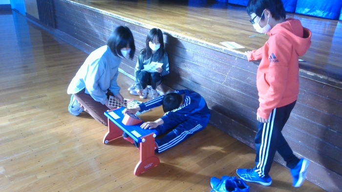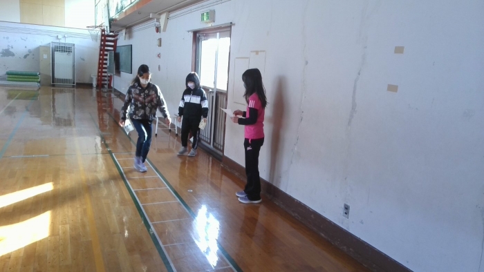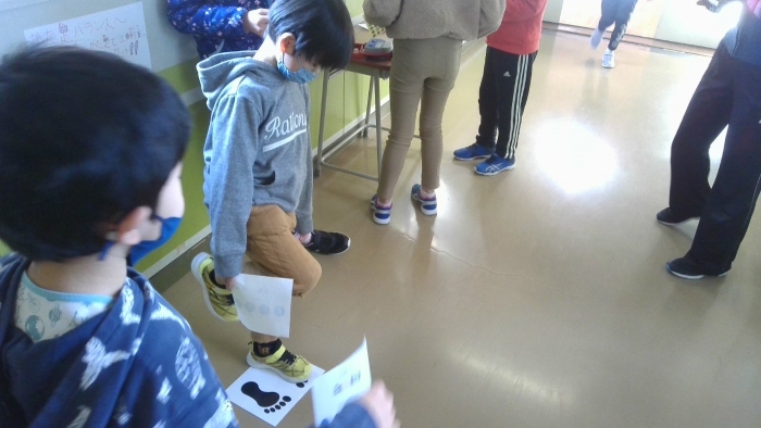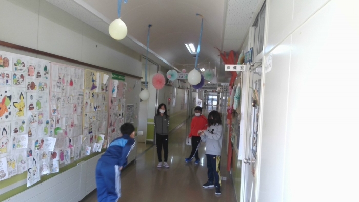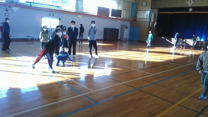 12月16日 元気100倍大会 2022年12月16日(金) 生活委員会の企画で「元気100倍大会」が開催されました。 「まと当て」「体前屈」「ラダー」「握力」「片足立ち」「風船タッチ」6つのコーナーに、子ども達は挑戦しました。 中には何度も挑戦して記録を伸ばす子もいました。 寒くなると、体を動かすのが億劫になりがちですが、毎日、少しでも体を動かすことが、健康で元気な体作りにつながります。 寒さに負けない元気な体を作ってほしいと願っています。