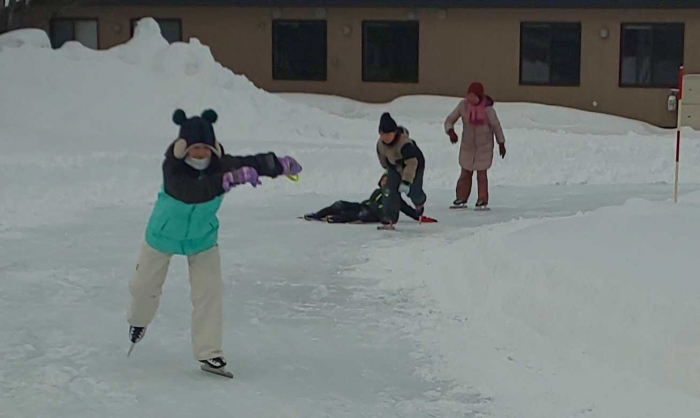 1月26日 スケート頑張っています 2023年01月26日(木) 今日も肌を刺すような寒さでしたが、子ども達は寒さに負けずスケート練習に励んでいます。来週、町営リンクで記録会を予定しています。 スケート学習の次は長靴アイスホッケーです。連日のリンク作業、本当にありがとうございます。