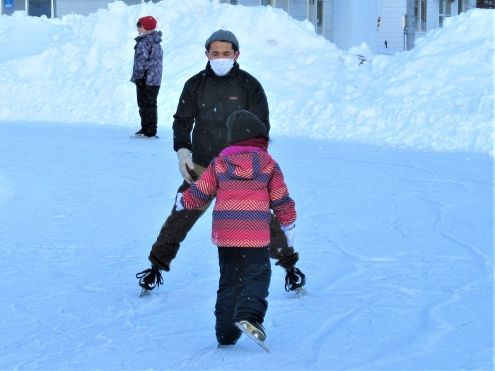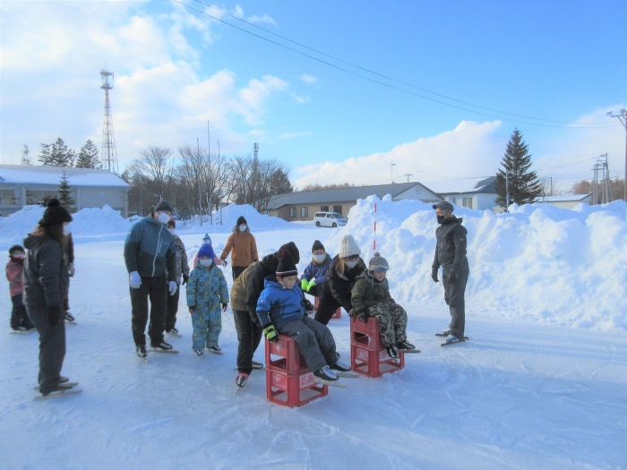 午後のスケートリンクでは、幼稚園の年長児さんと保護者の、先生方のスケート教室が開かれました、中西っ子のチャレンジ魂のルーツはここにあり!転んでも、頭から湯気が出るほど何度もチャレンジする園児の頑張りと、いっしょに滑って励まして心からほめるお父さんとお母さんと先生方・・・。心があたたかくなるスケート教室でした。
