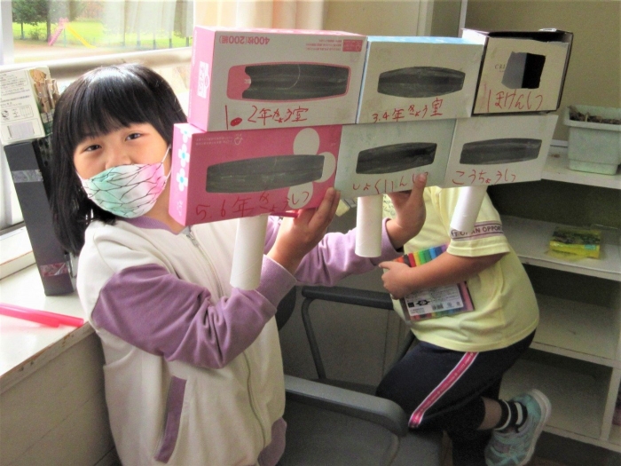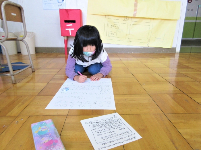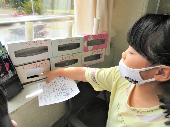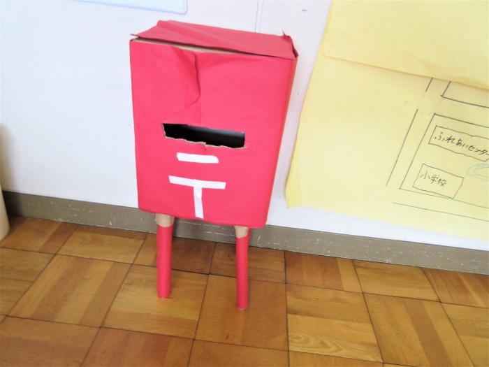 2年生は生活科の学習で「ゆうびんやさん」を始めることにしました。ハガキやポスト、帽子やポスターなど、ホンモノの郵便局みたいな準備をしています。「えがおのひみつ、たんけんたい」で郵便局を訪問した経験が、随所に生かされています!