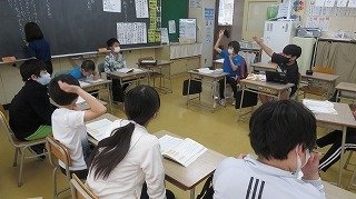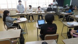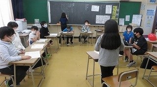 4年生の国語では、低学年と楽しむ新スポーツを班ごとに考え、さらにその新スポーツをよりよくするための討論会を行っていました。