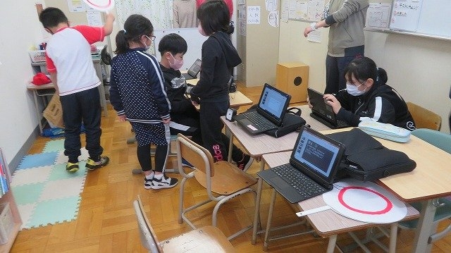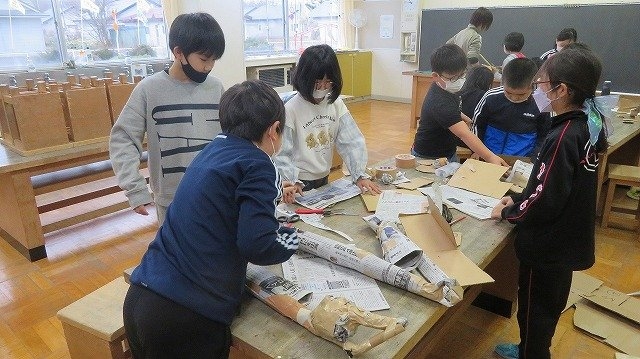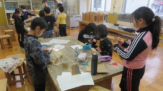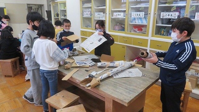 教室を回っていると、何か工作をしている場面を見かけます。しばらく見ていると、なんとなく感じがつかめてきて、何をつくっているか想像ができたりします。