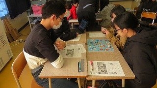 さいころを振りながら17の到達目標をクリアし、2030年のゴールを目指して進みます。さいころを振るごとにカードに書かれたSDGsに関係する問題を考えていきます。これまで学習してきたことがらを生かして即答できるものもあれば、頭をひねる問題も…。楽しみながらSDGsについて考えることができていました。