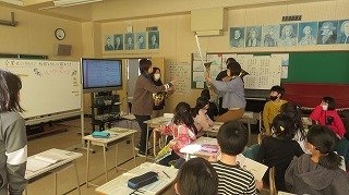 3年生の音楽では、「いろいろな金管楽器」を知り、トランペットやホルンの曲を聴きながらそれぞれの楽器の音色の特徴について感じたことをまとめる授業を行っていました。