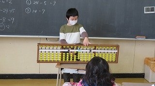 なんとか使えるようになっても、どのように珠を弾いて答えを導きだしたのかをみんなに説明するのがまた一苦労。頑張ってみんなに伝えている姿が印象的でした。