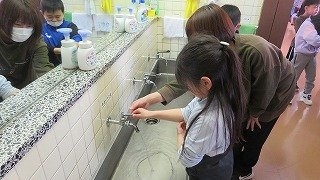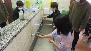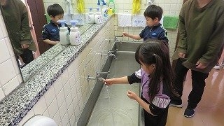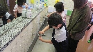 少しずつ学校の生活を知っていこう。 2023年04月10日(月) 授業の様子 入学して3日目の1年生のみなさん。少しずつ学校での生活に必要なことを覚えていきます。 今日は、流しに集まって水飲みなどが上手にできるように蛇口に慣れる練習をしていました。