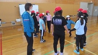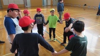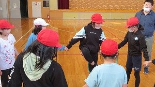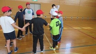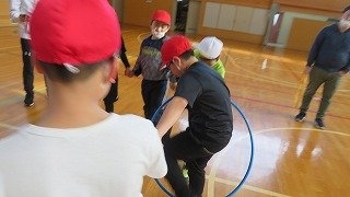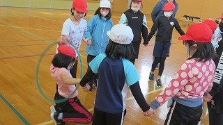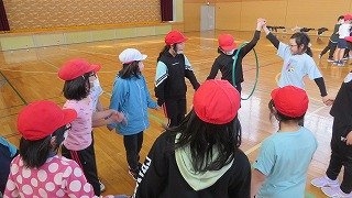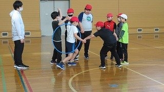息を合わせて。 2023年04月13日(木) 授業の様子 4年生の体育では、からだほぐし運動のひとつとしてフラフープくぐりに挑戦。 手をつないで輪になり、手を放さずにフラフープのバトンリレーをしていきます。 じょうずに体や手足をくねらせながらフラフープを渡していきます。 プレイ中、チームから応援の声が飛び交うなど、からだほぐしの目的に合わせてチームワークを高めることのできるエクササイズでした。 よろしかったら動画もご覧ください。
