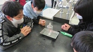 安全に実験を行うこと、しっかり観察すること、1度の実験の結果は正しいとは限らいないことなど、実験に臨む姿勢に合わせて、理科ならではの不思議感を味わえた1時間でした。