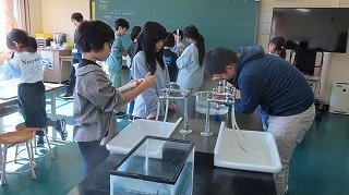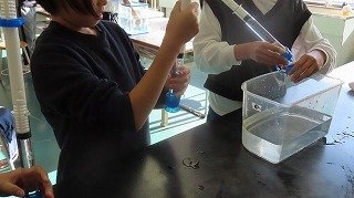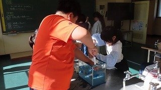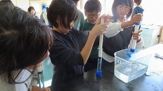 4年生の理科では、押し縮められた水の体積について調べていました。