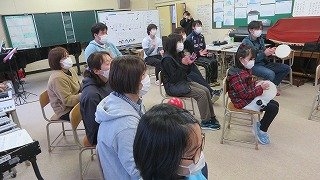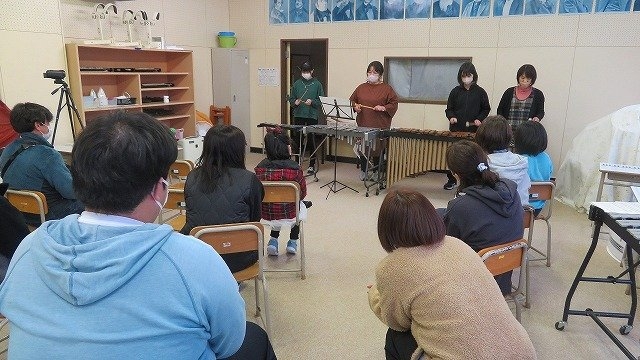 リズミカルな曲や叙情的な曲などのバリエーション豊かなプログラム。間に鉄琴の楽曲を披露し、鑑賞していた保護者の方や先生方も参加できる場面がありとても楽しいコンサートが進みます。
