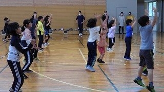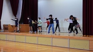 運動会では4年生以上がよさこいに取り組んでいますが、1年生から6年生まで一緒になって踊るのは、この委員会企画ならでは。体育館に響く声と動きの迫力は満点でした。