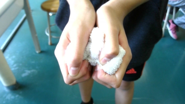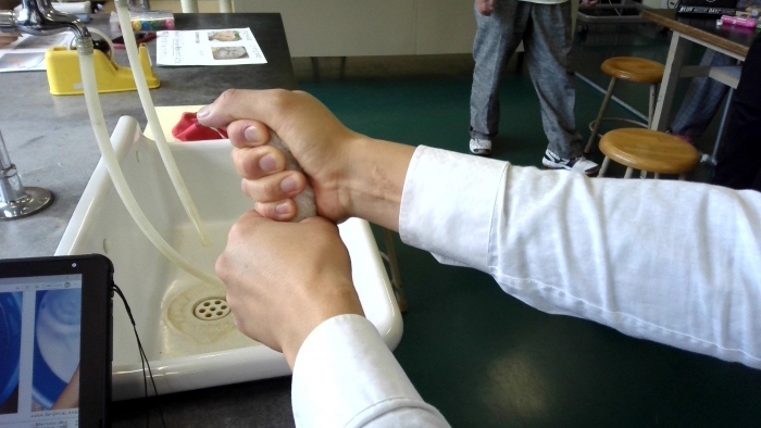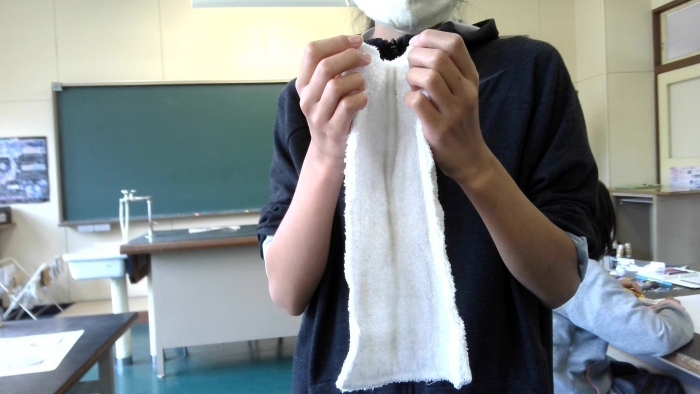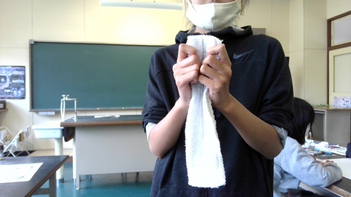 【中春別小学校】 (7月9日) 環境委員会「雑巾の絞り方」