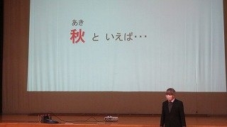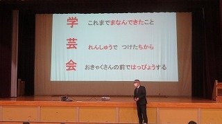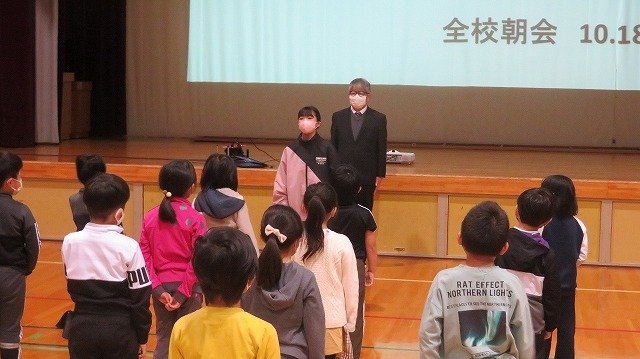 今朝の全校朝会は、学芸会を終え、折り返しを迎えた2学期。
