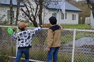 アウトドアクラブでは、虫採りを行いました。幾分寒くなり虫の姿もまばらでしたが、バッタを捕まえたり、姫リンゴを見つけたりと、秋の景色を楽しんでいました。