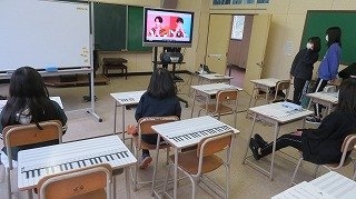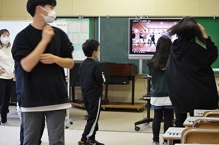 ミュージック・ダンスクラブでは、新しいダンスにチャレンジです。まずは、踊る楽曲の動画をみんなで観た後、さっそく練習です。はじめてでも、慣れた感じでダンスすることができていました。