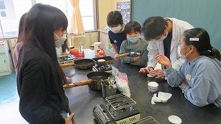 サイエンスクラブでは、べっこう飴づくりに取り組んでいました。砂糖と水の分量、そして加熱の塩梅の調整が難しいようで、試行錯誤を重ねているようでした。