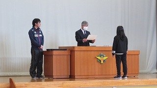 表彰は、バドミントン大会北海道小学生ABCバドミントン大会釧根地区予選会の団男子Bシングルスで3位入賞と春季ジュニアバドミントン大会の賞状伝達でした。