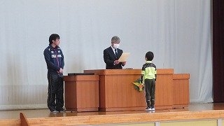 ジュニアバドミントン大会は複数入賞した児童がいたので代表して3位に入賞した児童が賞状を受け取りました。