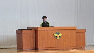 北海道小学生ABCバドミントン大会釧根地区予選会で入賞した二人は全道大会へと進出です。児童の代表から決意が発表されました。活躍期待しています。