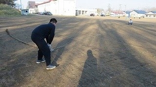 グラウンド設営の前に、卒業した保護者の方にお力沿いを頂き、設営に必要なポイントをグラウンドの測量を行っていただきました。本校の教育学校にご支援賜り深く感謝申し上げます。