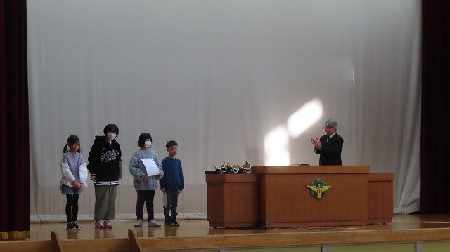 朝会の最後に、大谷選手から寄贈されグローブのお披露目を行いました。