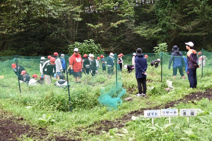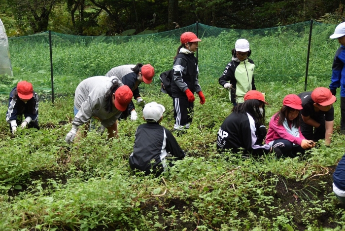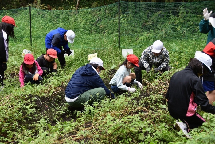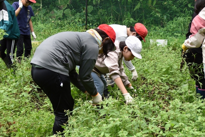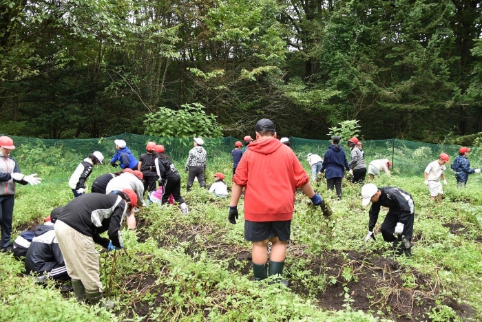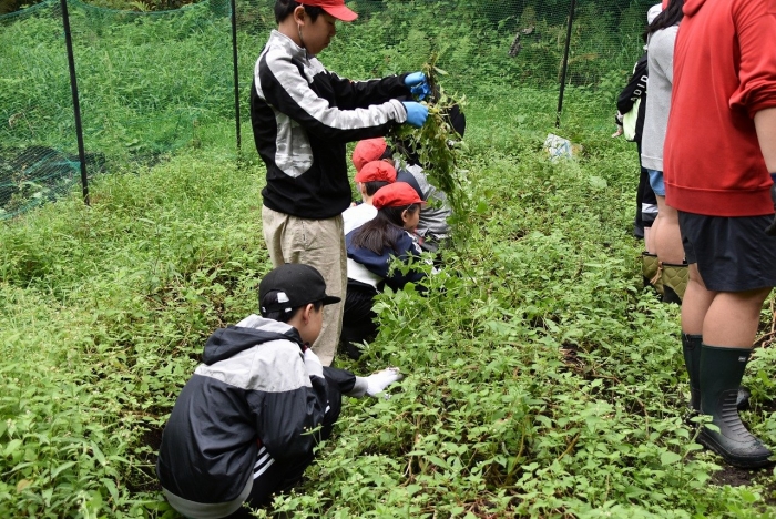 5時間目、3・5年生が夏休み中に伸びた畑の草取りをしました。