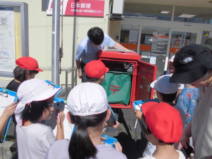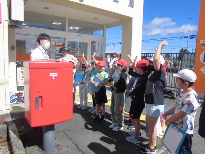 今日の生活科では中春別郵便局を見学しました。郵便局内を見学したり、ポストや配達車のことも郵便局員さんから教えてもらいました。質問にも丁寧に答えていただき、子どもたちは郵便局について理解を深めることができました。