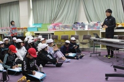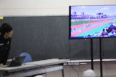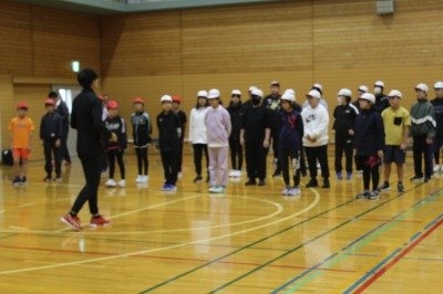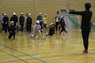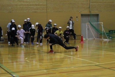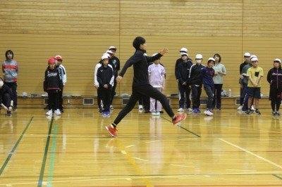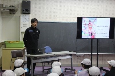 三段跳びは踏切から3歩、ケンケン跳びをしながら跳ぶこと、電車1両分ほどの距離を跳ぶこと、跳ぶ際に膝にかかる負担は1トンにも及ぶことなど、知らない世界をたくさん知ることができ、お子さんたちからも時折、歓声が。