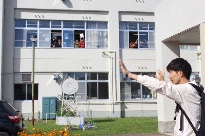 最後は、色紙にサインをいただき、窓からお見送りをしました。